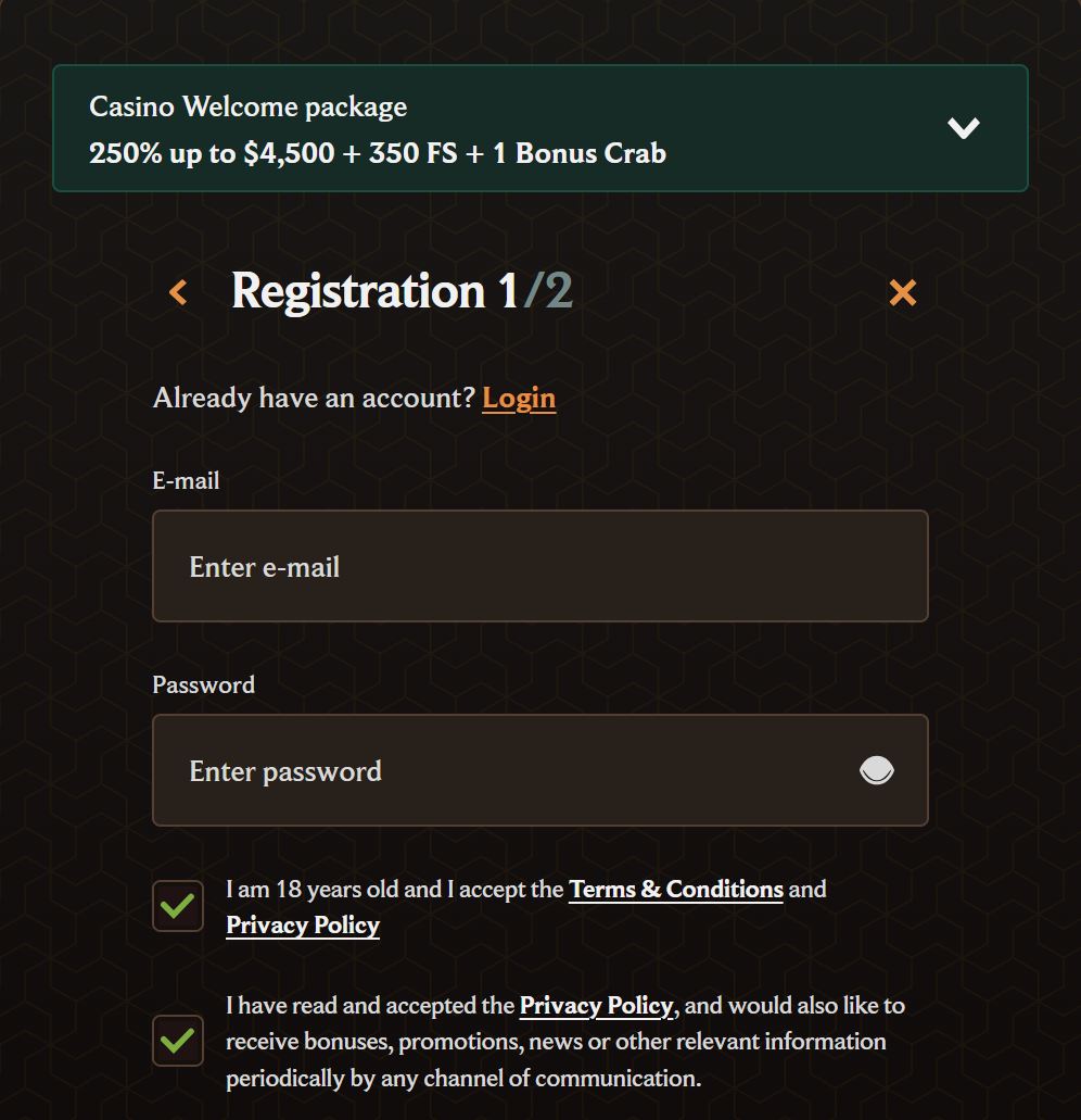 Step 5:Tick the box to confirm you are of legal age to gamble and accept the terms and conditions, privacy policy and verification policy, then click on Open Account.