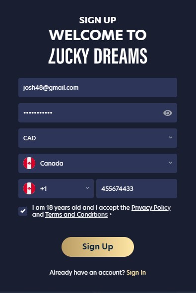 Getting setup and playing at Lucky Dreams Casino takes only 30 seconds of your time, and just a few clicks! Here’s what you need to do:
