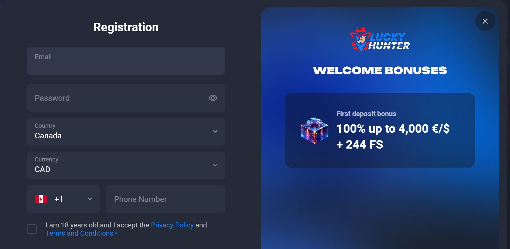 While the casino shows potential, the inability for Canadian players to access its services hinders its overall appeal. Therefore, based on the current limitations and considering a global perspective, I give Lucky Hunter Casino a rating of 6 out of 10.