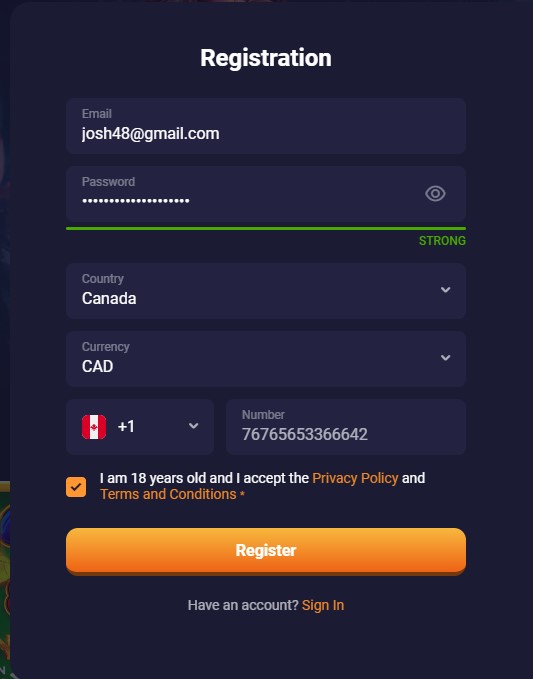 Step 1:Sign up for a new player account