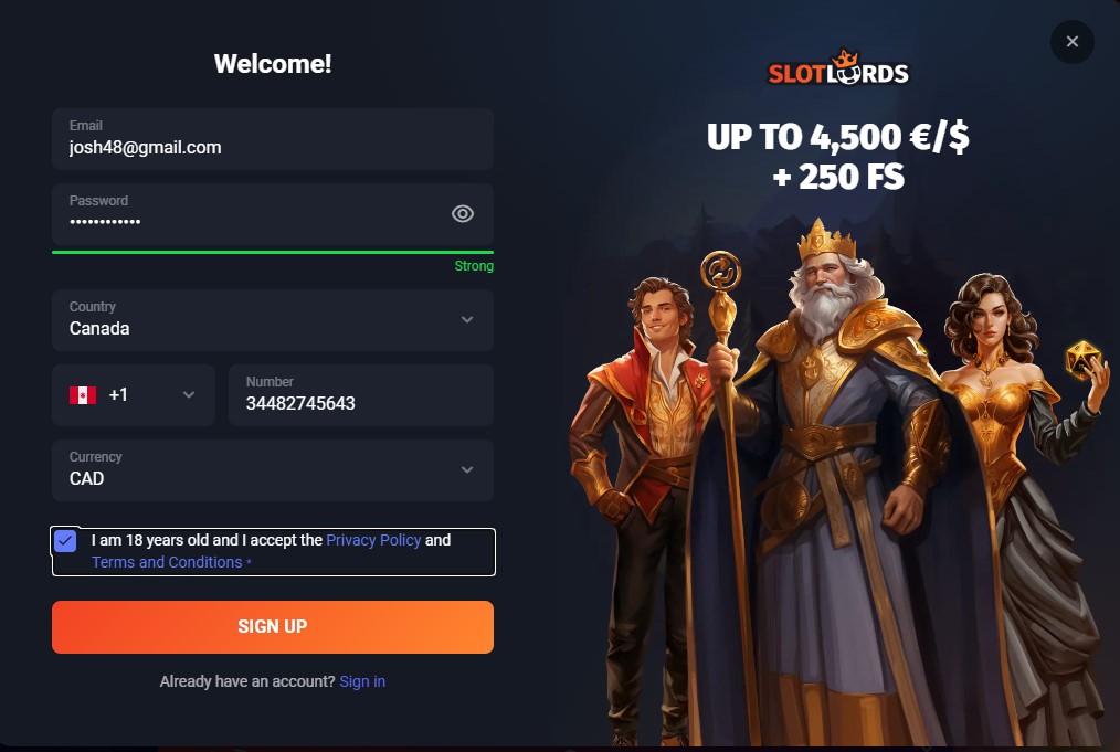 Getting setup and playing at SlotLords Casino takes only 30 seconds of your time, and just a few clicks! Here’s what you need to do: